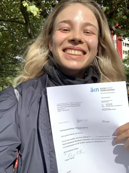 Я хочу поблагодарить Александра и всех сотрудников Med Studium за огромную помощь в переезде в Германию! Я мечтала об этом с детства, учила немецкий, проходила стажировки в Дрездене, но все никак не могла собраться, чтобы переехать, потому что было страшно и непонятно. В месяц, когда я закончила свою ординатуру по дерматологии в Питере, я нашла сайт Med Studium и договорилась с Александром о консультации. Признаться, я вообще ничего не ожидала, но Александр быстро составил мне четкий план действий, обрисовал несколько возможностей и путей. И с того звонка все наконец закрутилось: я начала готовить документы, составлять резюме, заниматься переводами. Команда консультировала и помогала на каждом этапе.